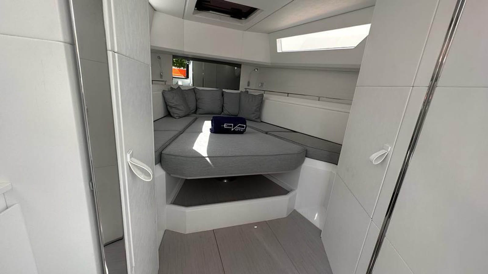 El EVO R4 es una obra maestra de la innovación y el diseño, con un exterior elegante y futurista que no dejará indiferente a nadie. Suba a bordo y experimente lo último en confort y estilo, con amplias zonas de cubierta para tomar el sol y socializar, así como lujosos interiores equipados con las comodidades y prestaciones más avanzadas. El EVO R4 ofrece un nivel de lujo insuperable, ya sea para celebrar una fiesta por todo lo alto o para relajarse con sus seres queridos.