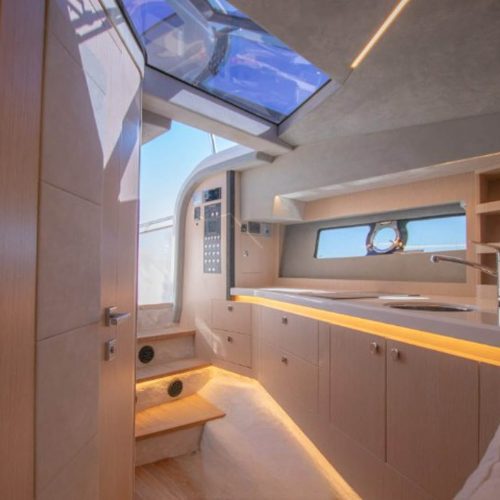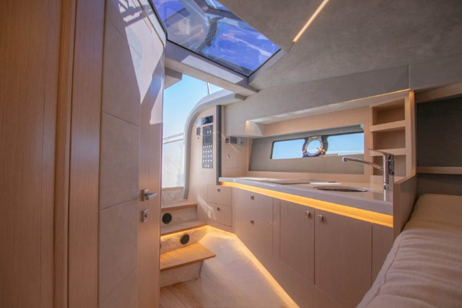 Más allá de su cautivadora estética, el FOCUS FORZA 40 presume de unas prestaciones inigualables. Propulsado por motores de última generación y equipado con avanzados sistemas de navegación, este yate se desliza sin esfuerzo por las olas del Mediterráneo, ofreciendo un viaje suave y estimulante. Tanto si navega por la costa como si se aventura en aguas abiertas, el FOCUS FORZA 40 ofrece una experiencia de navegación fluida y estimulante.