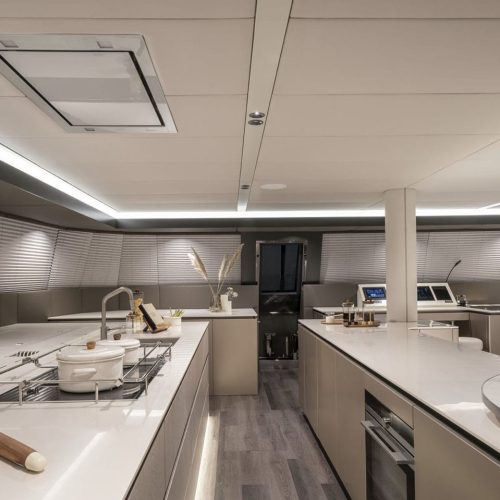 Suba a bordo del SUNREEF 70 y sea recibido por un mundo de opulencia y sofisticación. Con sus amplios interiores y su lujoso mobiliario, este catamarán establece un nuevo estándar de elegancia en el mar. Tanto si está descansando en el amplio salón como en uno de los camarotes bellamente equipados, encontrará un amplio espacio para relajarse y disfrutar del lujo.