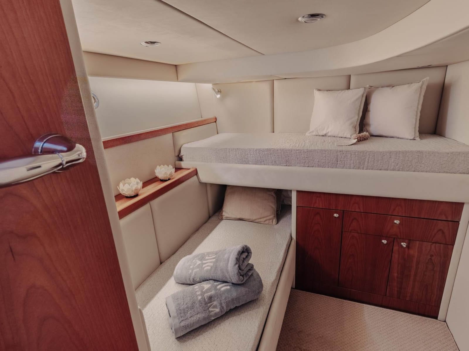 Suba a bordo del SUNSEEKER PORTOFINO 53 y entre en un mundo de lujo y confort sin igual. La espaciosa cubierta ofrece un amplio espacio para tomar el sol, comer y socializar, mientras que los interiores bien equipados ofrecen un refugio de relajación y refinamiento. Desde la cocina totalmente equipada hasta los sistemas de entretenimiento de última generación, cada aspecto de este yate está diseñado para superar las expectativas de los huéspedes más exigentes.