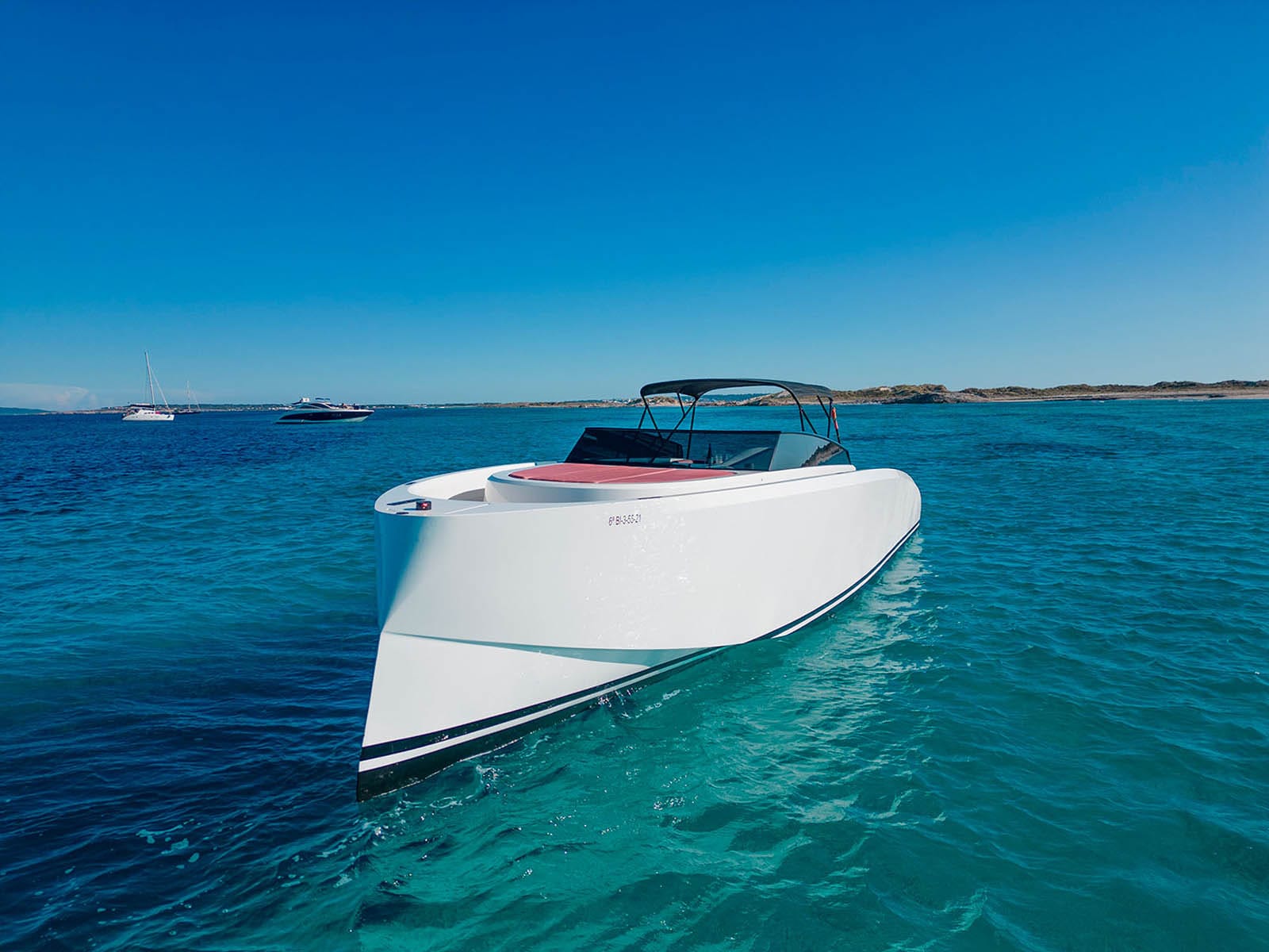 Propulsado por motores avanzados, el VANQUISH 43 ofrece una velocidad y agilidad impresionantes, permitiéndole navegar por las aguas de Ibiza y Formentera con facilidad. Su manejo superior garantiza una conducción suave y estable, incluso en condiciones agitadas, haciendo que cada viaje sea un placer.