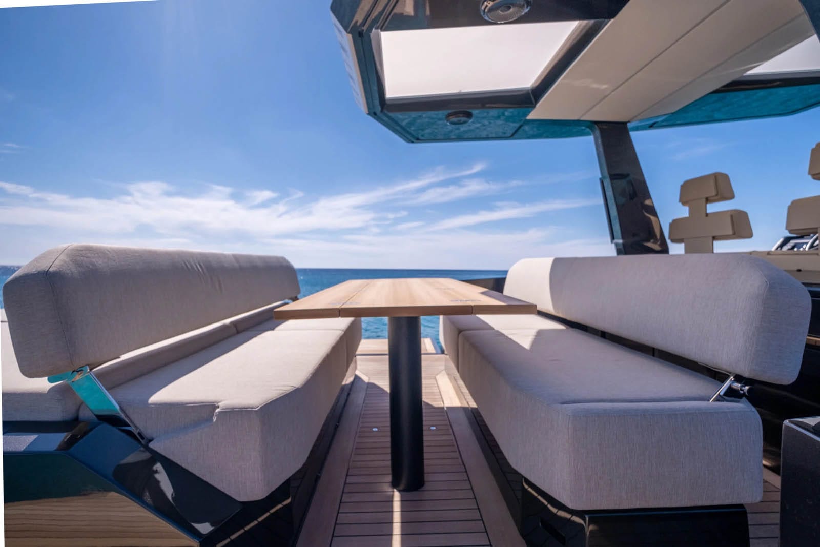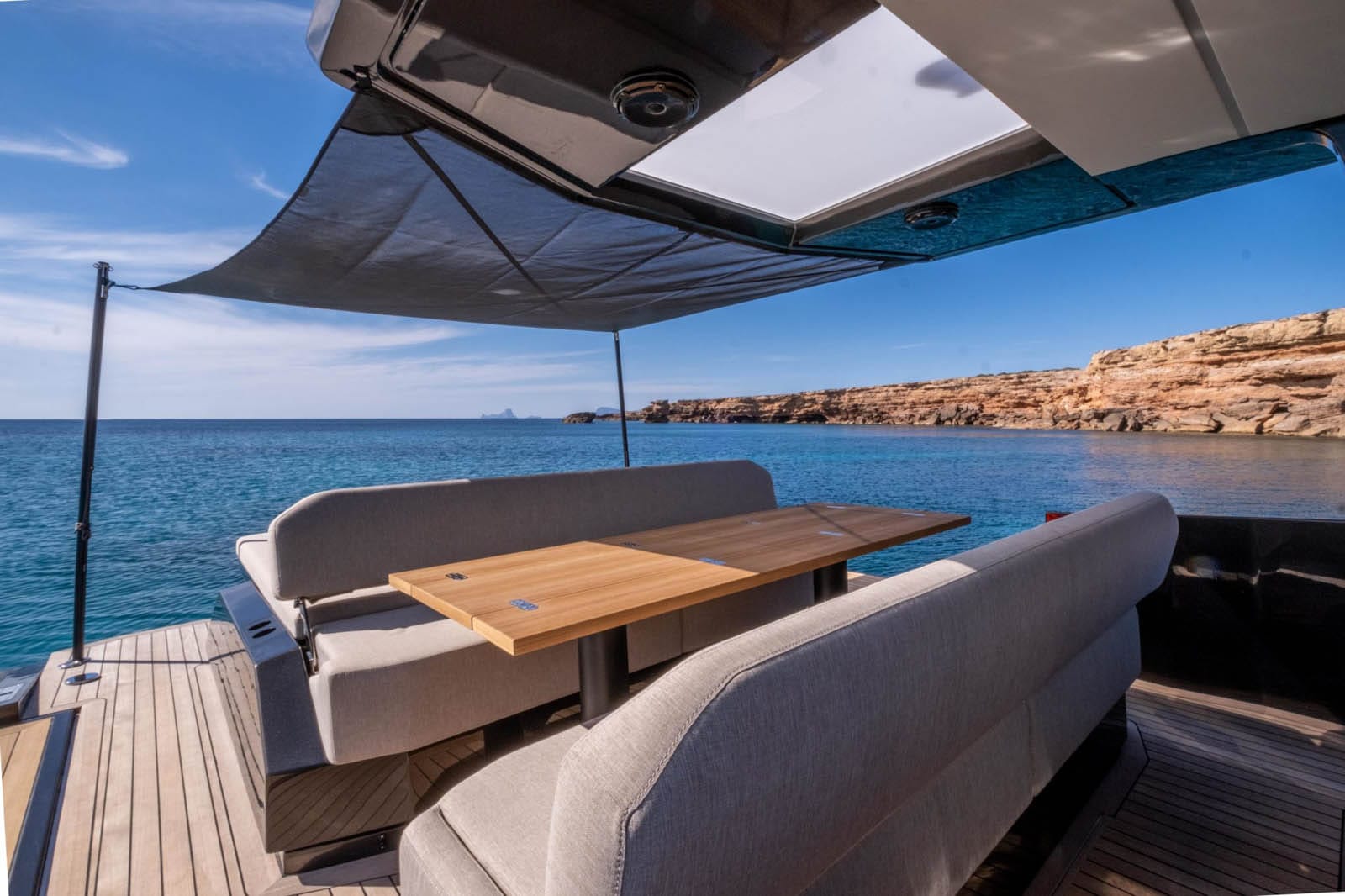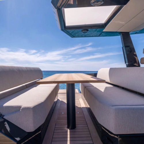 El WALLY 48 dispone de amplias cubiertas diseñadas para el ocio y el entretenimiento. La cubierta de popa, equipada con una mesa espaciosa y cómodos asientos, es ideal para comer al aire libre. Los amantes del sol apreciarán las colchonetas de la cubierta de proa, mientras que la plataforma de baño hidráulica ofrece un fácil acceso a las tentadoras aguas para nadar o practicar deportes acuáticos.
