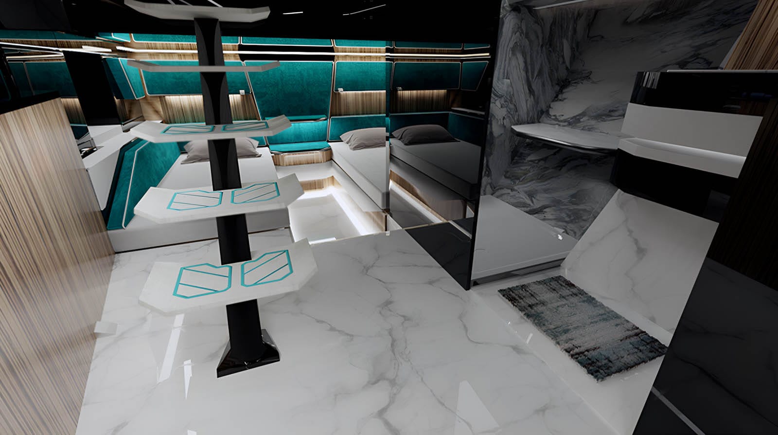 Unwind in style within the expansive interiors of the SUERTE 50. Featuring plush furnishings and state-of-the-art amenities, each cabin offers a haven of relaxation. Whether you’re seeking a romantic retreat or a family getaway, the SUERTE 50 caters to your every need with its spacious accommodations.